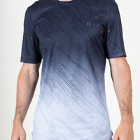 A gradient active tee with ventilation holes, reflective branding, and a curved hem designed for performance.