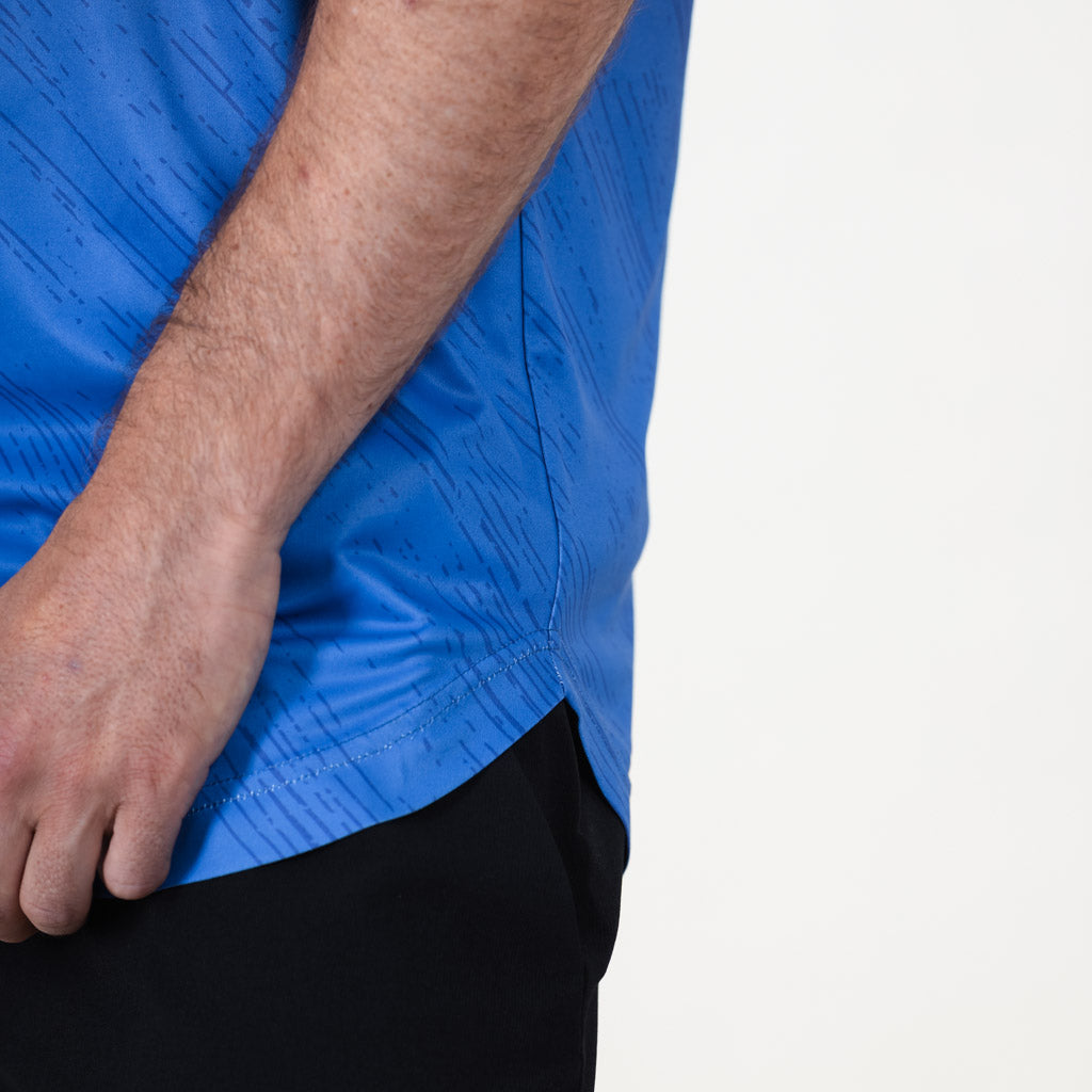 A gradient active tee with ventilation holes, reflective branding, and a curved hem designed for performance.