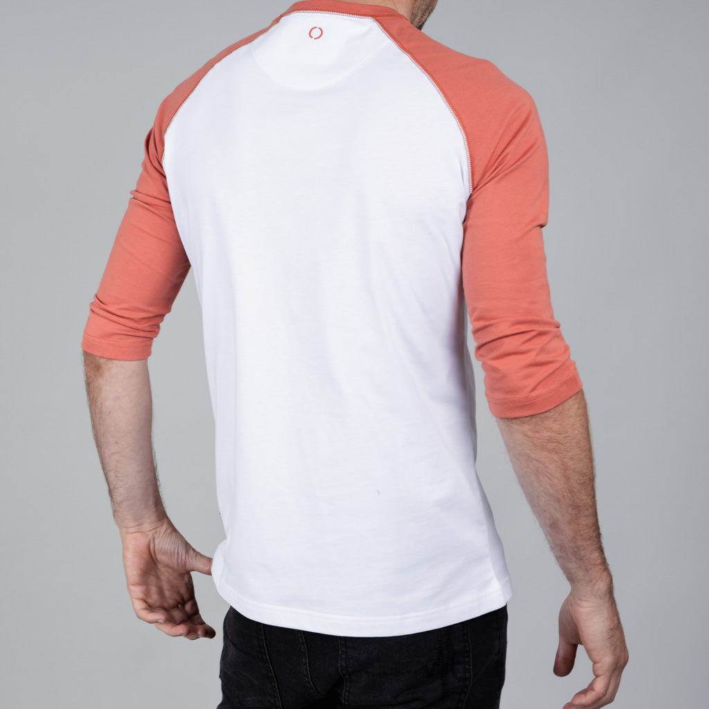 A baseball tee with contrast raglan sleeves, embroidered logo, and slim fit for a sporty, casual look.