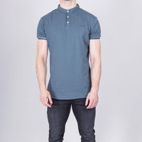 A slim-fit textured polo with pique-stitched collar and split hem, finished with tonal embroidery for understated elegance.