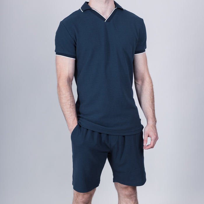 Saird Cotton Waffle Collar T-Shirt - Medieval Blue