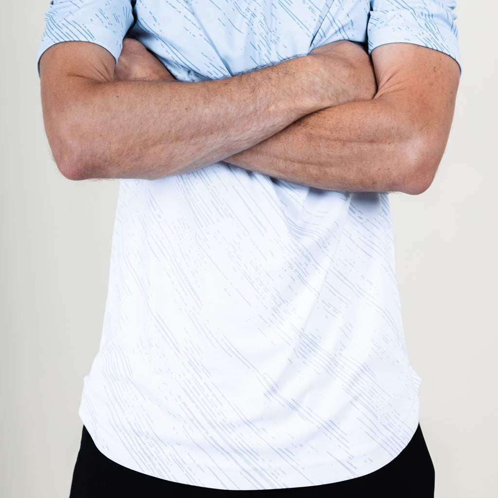 A gradient active tee with ventilation holes, reflective branding, and a curved hem designed for performance.