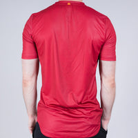 A tech fabric sports tee with a Scottish Heather-inspired pattern, reflective logo, and curved hem for an active fit.